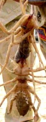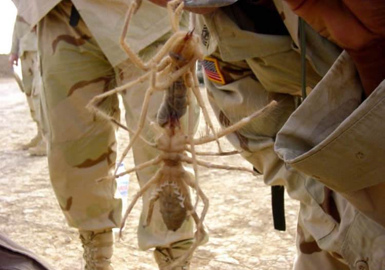 What would you do if you woke up to find one of these creatures near your pillow? What would you do if you were in the army and surrounded by these creatures? Please click here for a very sharp photo of a portion of this creature that resembles the front end of a "camel spider".